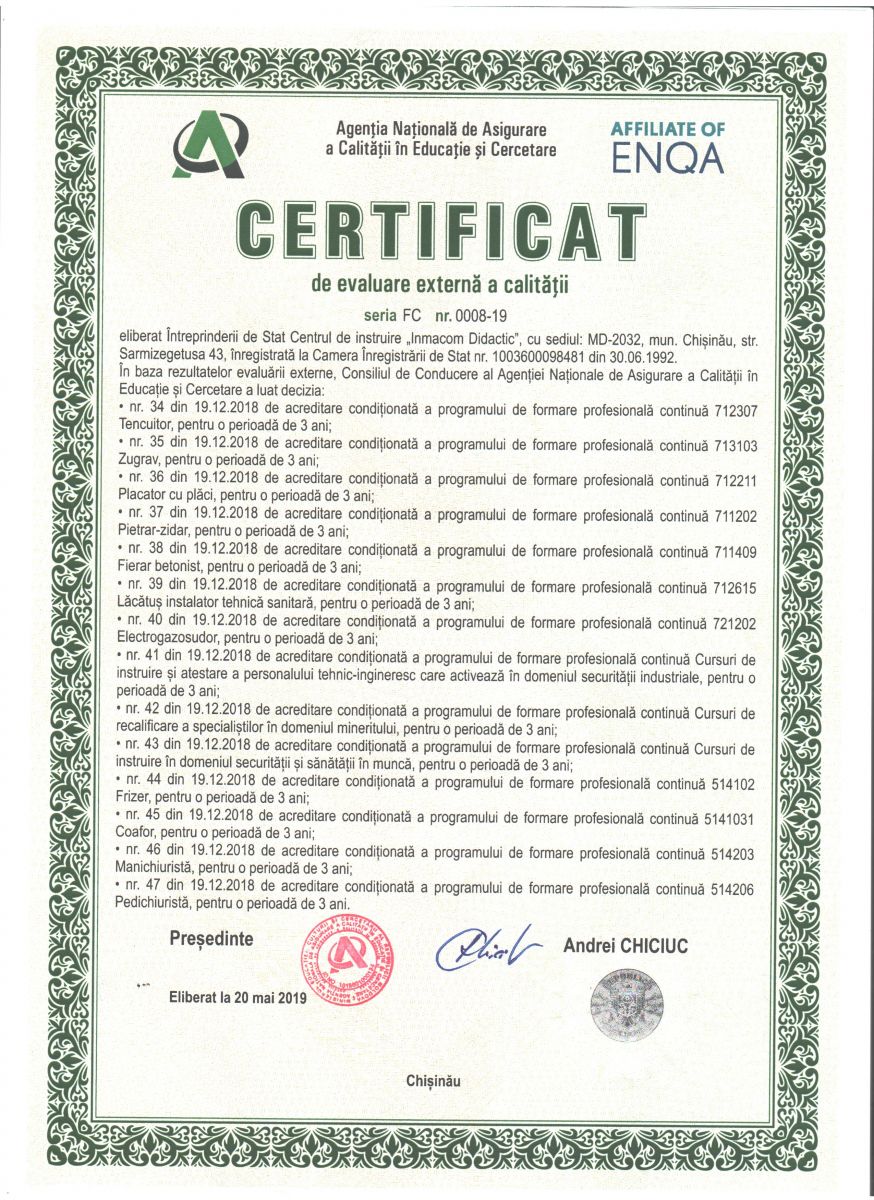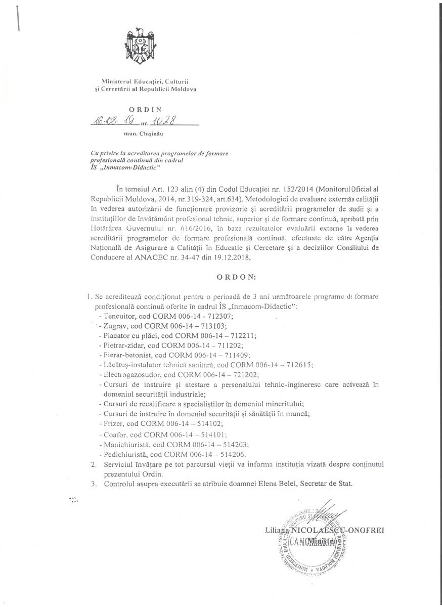 Ordin cu privire la acreditarea programelor de formare profesională continuă nr. 1028 din 16.08.2019